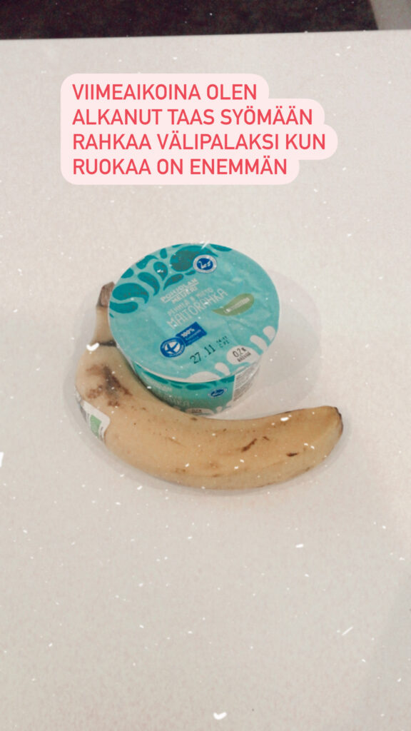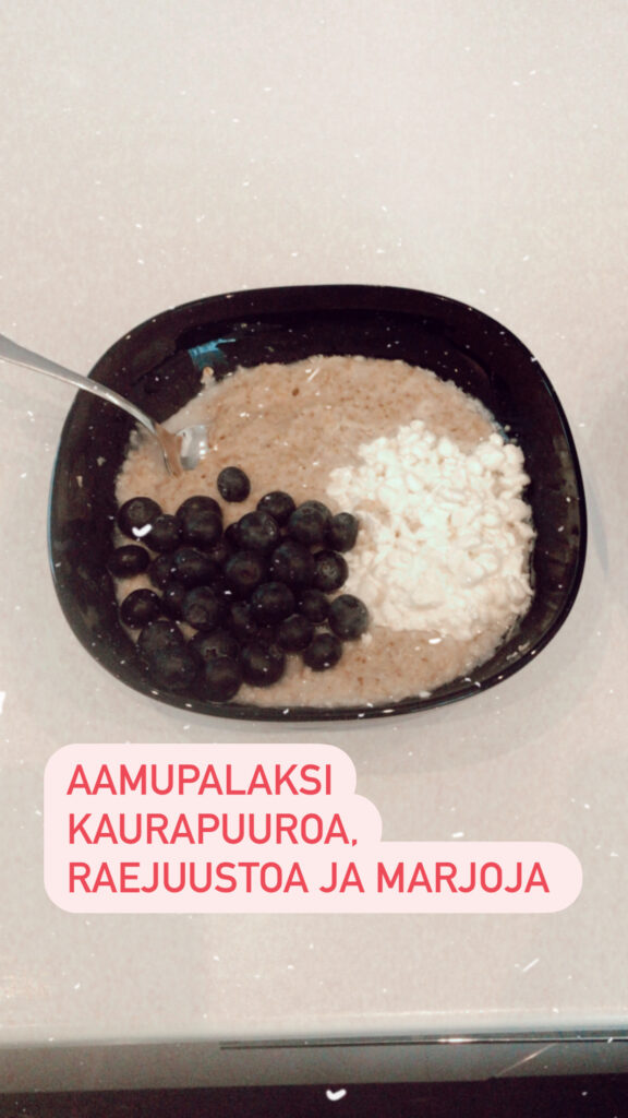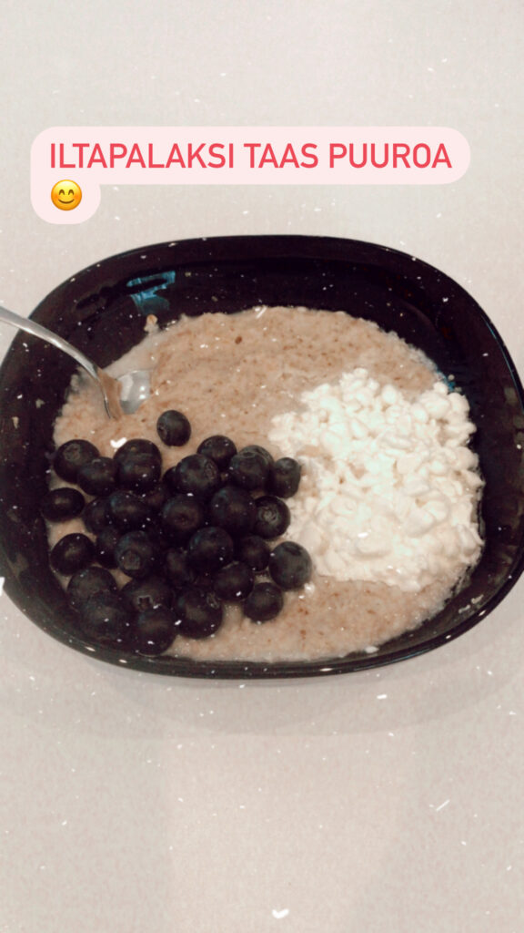 Nyt tilanne on se, että ruokaa on tosiaan lisätty ja sitä on minulle paljon eli nälkä ei vaivaa. Isoin muutos oli se, että aamupala on nykyään iso kaurapuuroannos, kun se ennen oli munakas. Otin myös maitorahkan mukaan parin vuoden tauon jälkeen siitä syystä, että ruokaa on nyt sen verran reippaasti, että rahka on riittävä ja helppo välipala. Tarkkoja kaloreita en ole edes laskenut koska en pidä niitä oleellisena asiana.